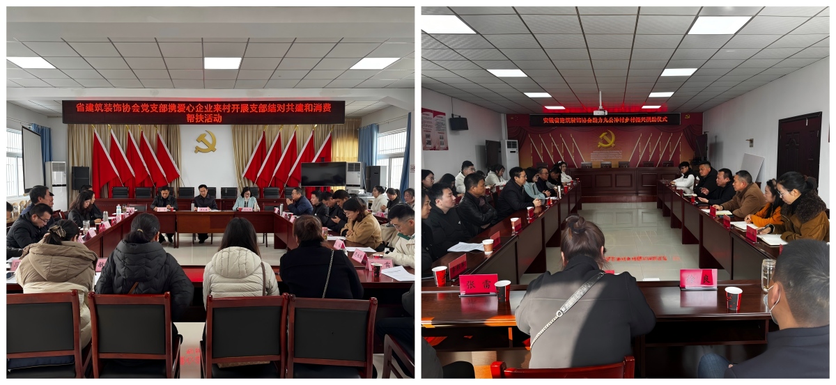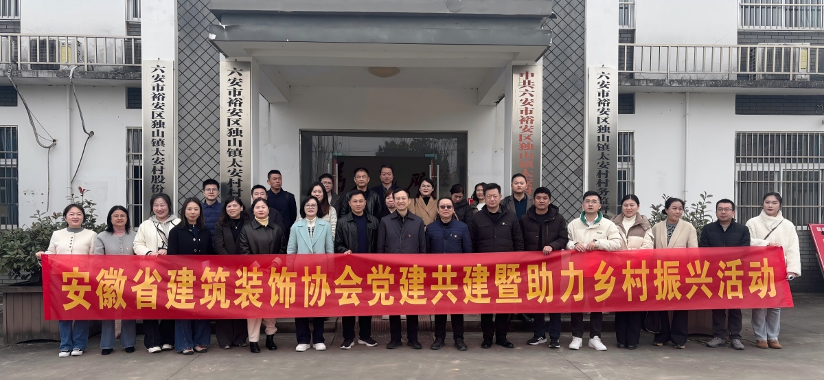 2025年12月19日,安徽省建筑裝飾協會組織部分會員單位,前往安徽省住建廳鄉(xiāng)村振興定點幫扶村——六安市裕安區(qū)獨山鎮(zhèn)太安村與石板沖鄉(xiāng)九公沖村,開展黨建共建暨助力鄉(xiāng)村振興專題活動。本次活動旨在深入學習貫徹黨的二十屆四中全會精神,積極踐行國家及省委、省政府關于鞏固拓展脫貧攻堅成果、全面推進鄉(xiāng)村振興的戰(zhàn)略部署,引導行業(yè)力量深入鄉(xiāng)村、服務基層,在鄉(xiāng)村振興的偉大實踐中展現新擔當、新作為。